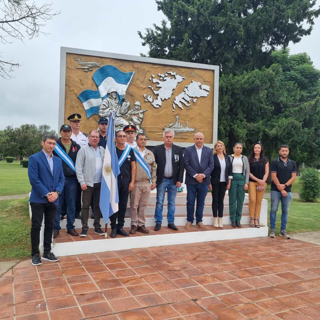 Una vez finalizado el acto, las autoridades se trasladaron al monumento a los veteranos y caídos en Malvinas ubicado en Chacabuco esquina Belgrano donde izaron la bandera y depositaron las ofrendas florales.