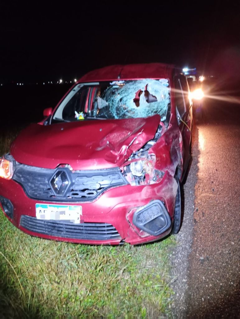 Anoche alrededor de las 23:30 hs se produjo un accidente en el cuál una Renault Kangoo colicionó con un ciervo.