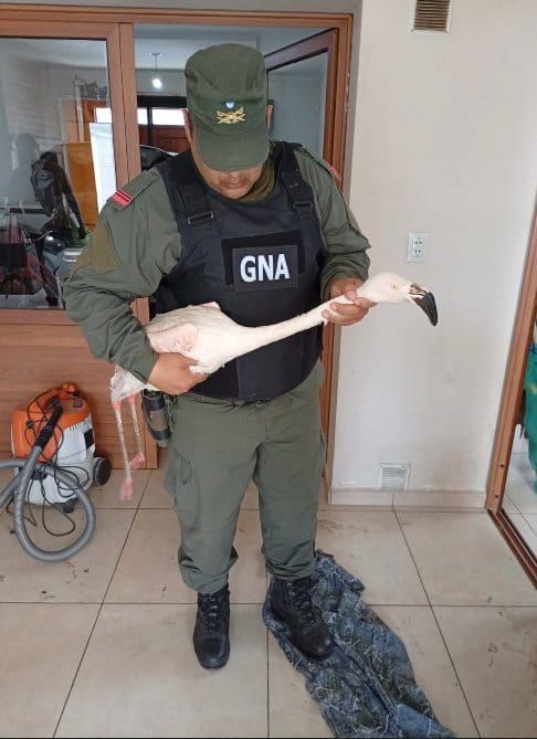 Un flamenco austral que se encontraba en cautiverio fue rescatado durante un allanamiento en una vivienda de James Craik, tras una denuncia por tenencia ilegal de fauna silvestre.
